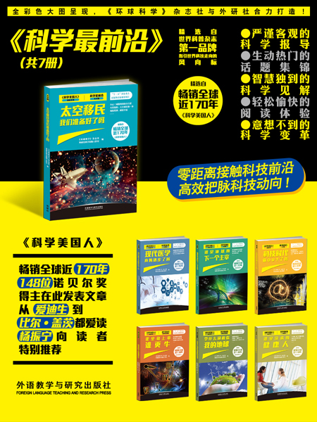 《科學最前沿》系列叢書精選自全球頂尖的科普雜志《科學美國人》,全系列分為7個分冊,包括數理與化學篇、環境與能源篇、健康篇、醫藥篇、天文篇、生物篇及科技篇等,涵蓋了現代科技的方方面面。全書選篇力求貼近生活,帶領讀者飽覽科技發展的最新成果,使讀者在享受現代科技的同時,了解科技發展背后的探索歷程,提高自己的科學文化素養。