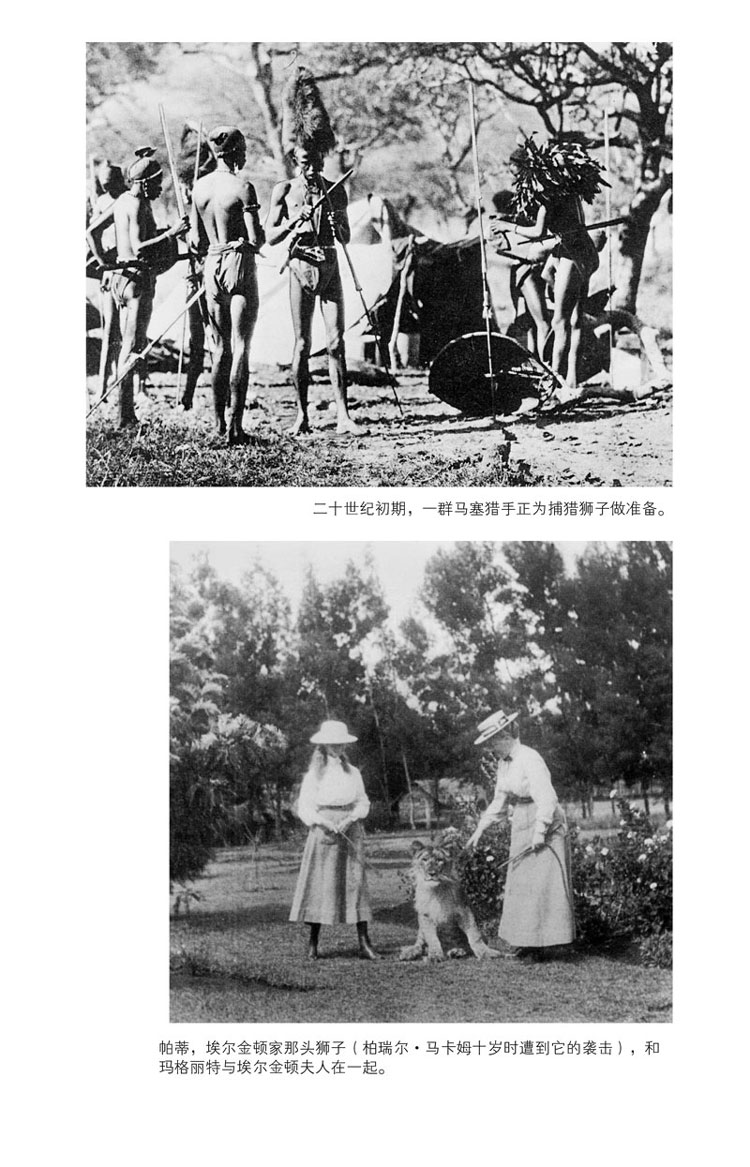 來到牧場的獅子、公牛、奶牛、牛犢低鳴著。人們衝過去抓起防風燈、來复槍,互相低語著。又是一片寂靜。黃褐色的身影因為殺戮而顯得沉重,穿梭於高高的草叢間。子彈在風中呼嘯,獅子飛身躍起,越過牛群和松木柵欄,來复槍放了